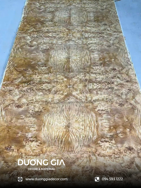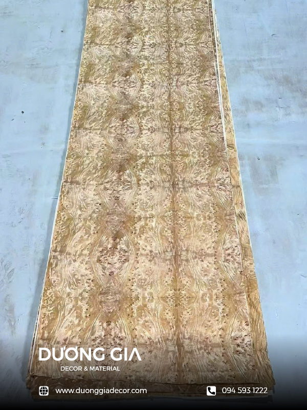 Veneer nu camphor (nu long não) là dòng vật liệu trang trí thượng lưu, nổi bật với những đường vân xoắn ốc độc bản và đầy tính nghệ thuật. Được chế tác từ những khối nu gỗ quý hiếm, sản phẩm mang đến vẻ đẹp sang trọng với tông màu vàng nâu ấm áp cùng hương thơm nhẹ nhàng đặc trưng của gỗ long não tự nhiên. Với đặc tính bền bỉ, khả năng chống cong vênh và tính thẩm mỹ vượt trội, veneer nu camphor là lựa chọn hoàn hảo để gia công các bề mặt nội thất cao cấp như tủ kệ, vách ốp tường hay đồ thủ công mỹ nghệ tinh xảo. Sản phẩm không chỉ nâng tầm không gian sống mà còn khẳng định gu thẩm mỹ tinh tế, đẳng cấp của gia chủ.